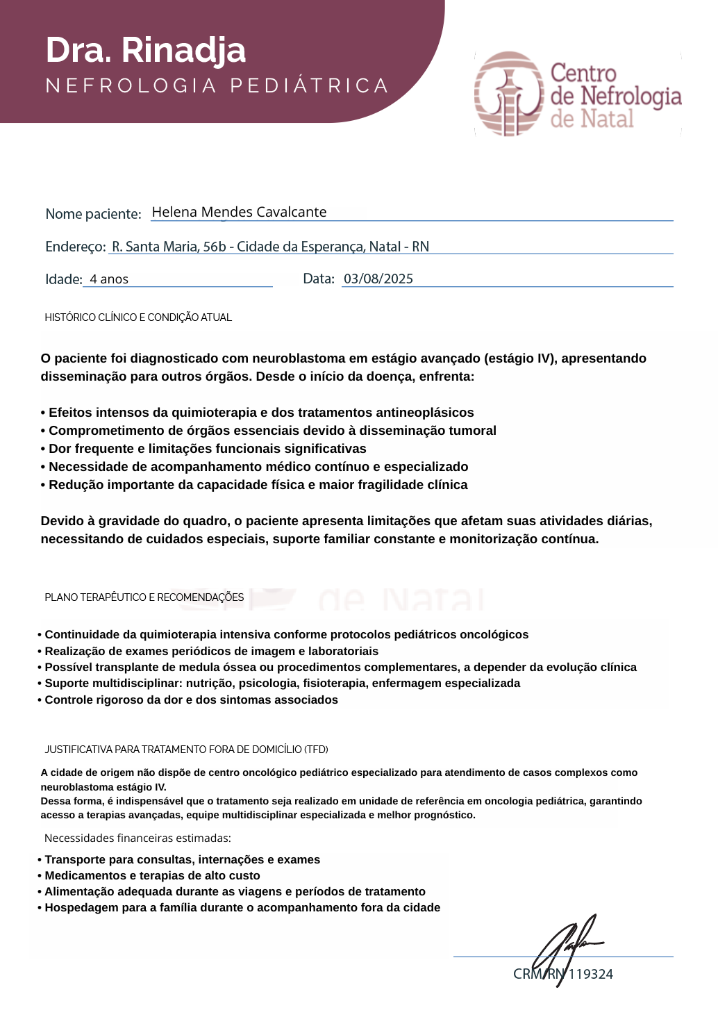 "O SUS cobre parte do tratamento, mas para que a Helena possa recebê-lo, precisamos nos mudar. Nossa família não consegue arcar com todas as despesas, e cada ajuda faz uma diferença enorme."
